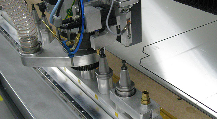 Je nach Material und Anwendung wird ein entsprechendes Werkzeug automatisch geladen. Neben den klassischen Fräswerkzeugen verfügt die Fräse auch über ein oszillierendes, sowie über ein Schleppmesser, womit auch Durchschneidearbeiten in z. B. Planen oder Leder möglich sind.